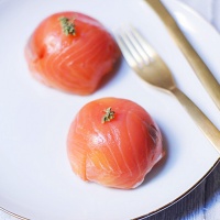 Etalez les tranches de saumon au fond des dômes (les tranches doivent dépassez d’au moins 1 cm sur les bords).